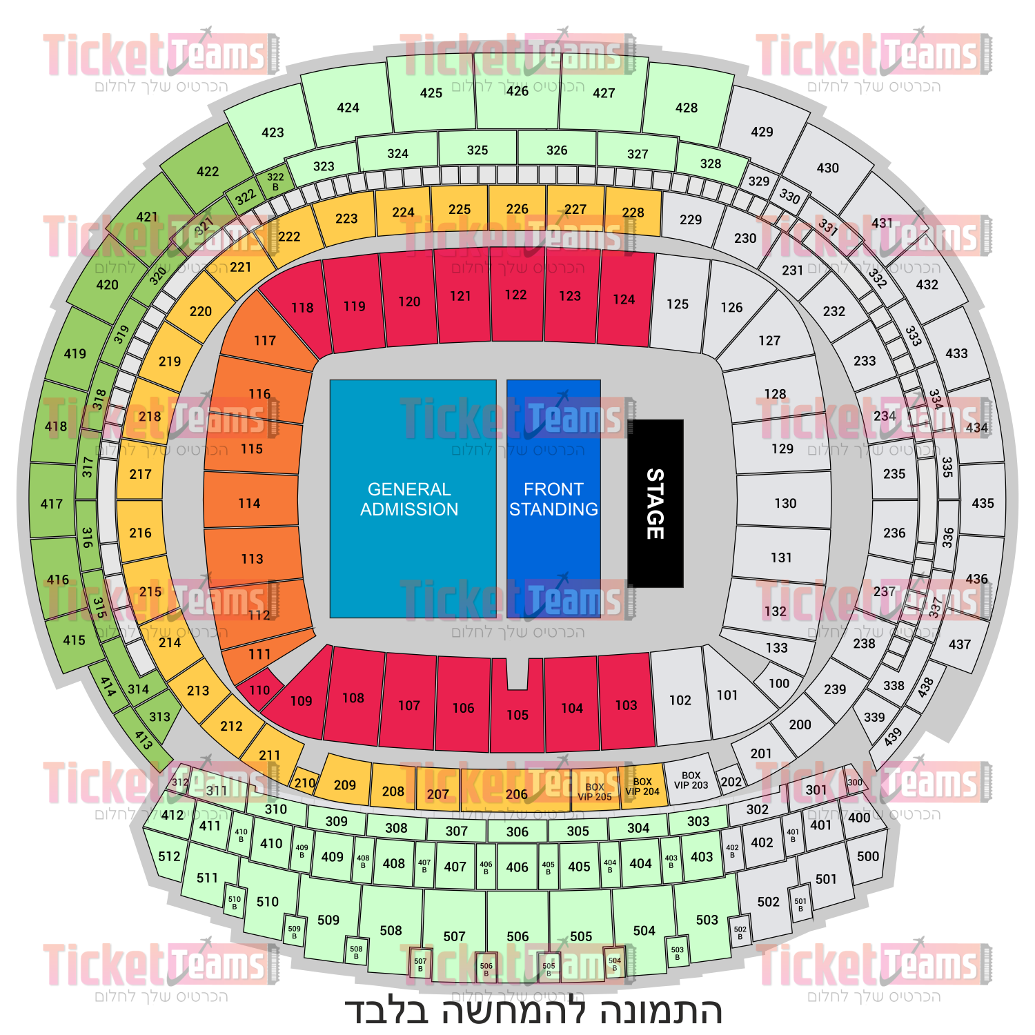 אנחנו עושים את מירב המאמצים כדי לתת ללקוחותינו את חווית הצפייה הטובה ביותר וכך שהכרטיסים יהיו במיקומים טובים כמה שאפשר, אך יש לקחת בחשבון כי מיקום הכרטיס יכול להיות בכל בלוק, שורה וכיסא בקטגוריה שבחרתם.